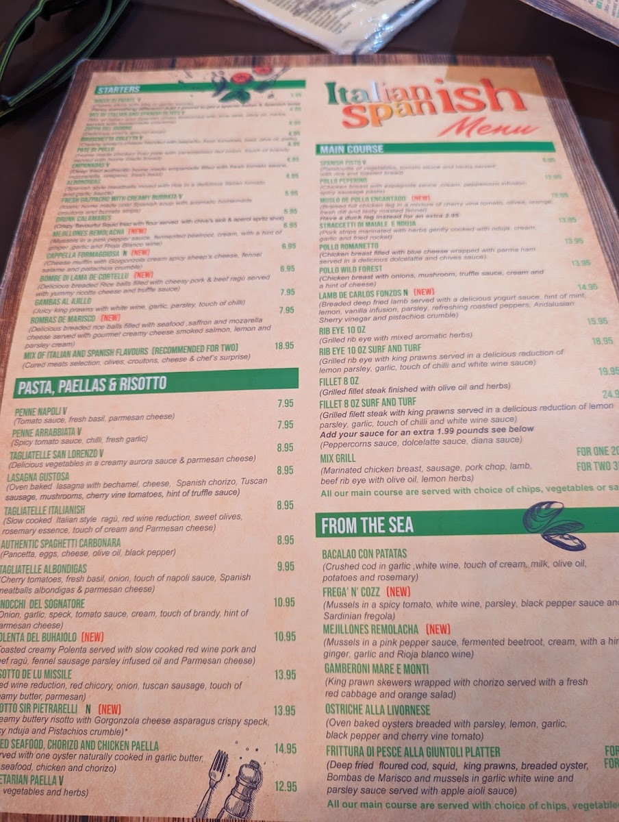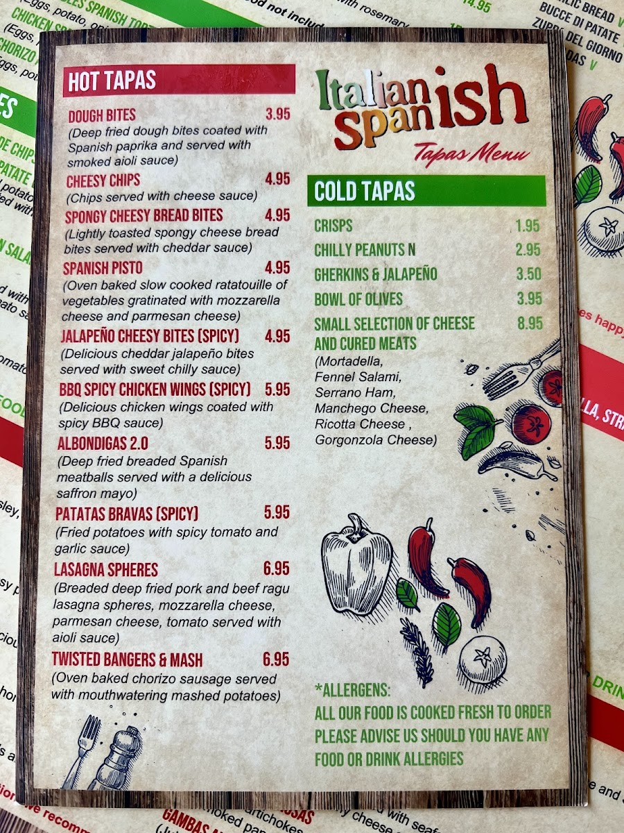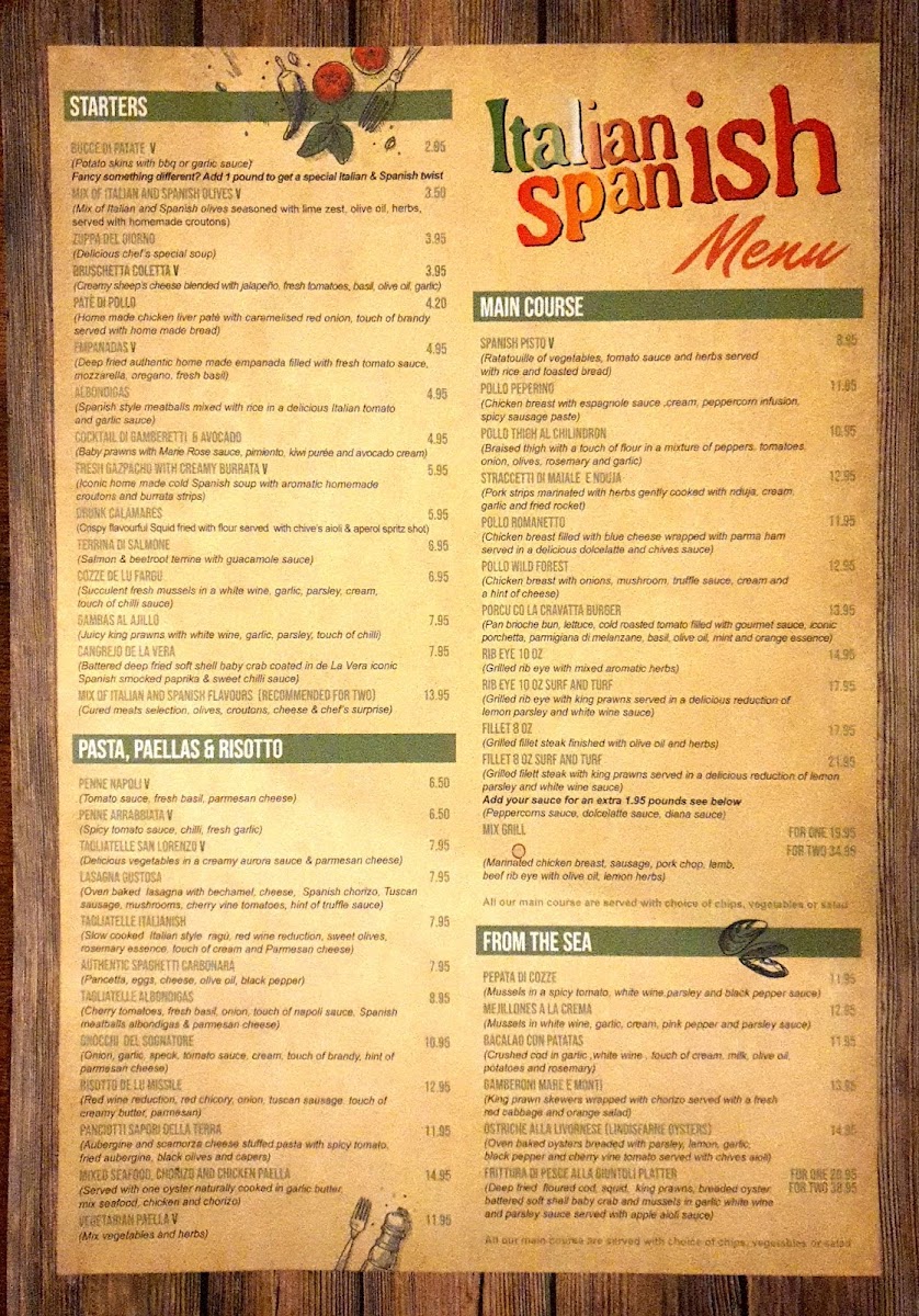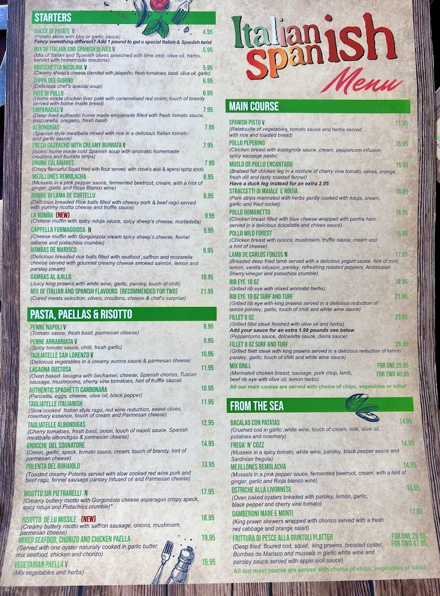 The menu at Italianish offers a relaxed blend of Italian and Spanish-inspired dishes, designed for sharing and savoring at a comfortable pace. You'll find a selection that fits casual lunches, laid-back dinners, or an unhurried catch-up with friends over drinks. Whether it’s the round of crispy potato skins to start or a warming bowl of Penne Napoli, the food feels at home in the friendly, easygoing atmosphere of the restaurant.